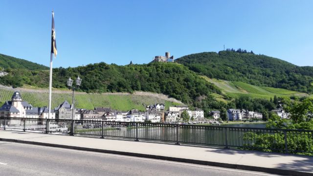 Nach dem morgentlichen Einkaufen und „unterwegs Frühstücks-Snacken“ ging es weiter in Richtung Bernkastel-Kues. Dort auf einem sehr netten Stellplatz angekommen ging es bei „Bullenhitze“ dann mit dem Fahrrad nachmittags nach Bernkastel-Kues. Dort dann ein wenig durch die wunderschöne Altstadt mit tollen Fachwerkhäusern schlendern, zwischendurch einen Eiskaffee geniessen, danach direkt am Moselufer ein Weinchen/Bierchen … Ja, so lässt es sich leben.