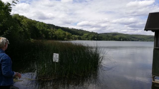 Zuerst zum „Wallenden Born“ nach Wallenborn, ein kleiner Geysir. Nach diversen Umleitungen auf Grund von Strassenbauarbeiten sind wir dann da auch tatsächlich aufgeschlagen, hatten aber dann tatsächlich keine Lust, darauf zu warten dass da ein Loch im Boden alle halbe Stunde mal einen mehr oder weniger grossen „Pups“ lässt. Auch die moderaten 1,5€ wollten wir dann so früh am Morgen eher in eine Art Frühstück statt in lokale Fördermassnahmen investieren. => doch lieber weiterfahren.