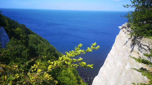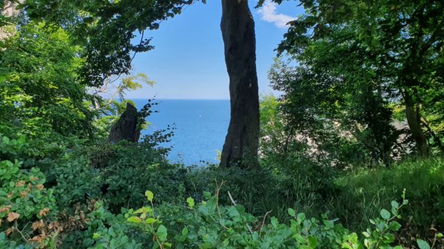 Von daher eben mal weiter zu den Top-Highlights: Kreidefelsen auf Rügen… Wir parken auf einem nahegelegenen Grossparkplatz, der auch offiziell als Wohnmobilstellplatz ausgewiesen ist. Wir hatten zwar nicht vor, dort zu übernachten, aber …Nach kurzer Lageeinschätzung haben wir uns entschlossen, dass wir uns festes Schuhwerk und einen Rucksack mitnehmen. Gottseidank… denn die anschliessende Tour auf Rügen entpuppta sich tatsächlich als eine recht anstrengende Wanderung zum Königsstuhl, zur Victoria-Sicht und zum Kieler Bach runter über eine Leiter ans Meer…danach wieder zum Parkplatz. Bis auf das letzte Stück immer steil rauf/runter. Wir hätten tatsächlich nie gedacht, dass es auf einer Insel im Norden dermassen steil rauf und runter gehen könnte, dass sich „einigermassen geübte Fränkische-Schweiz-Wanderer“ schon gestresst fühlen können…irre.