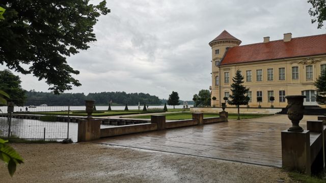 Auf dem Weg Richtung Berlin wollten wir unbedingt noch mal bei Schloss Rheinsberg vorbeischauen. Leider war das Wetter nicht mehr ganz so prickelnd, aber wir haben uns trotz Regens nochmal aufgemacht. Es war sehr nett, mal durch die Gärten zu schlendern, aber für mehr Kultur fehlte uns dann doch die Lust. Also sind wir ein wenig durch den Park geschlendert, haben uns mit Paddlern unterhalten, wie es denn mit Paddeltouren durch die Gegend so läuft. Das ist ja schon ein ganz eigenes Volk, das einem da begegnet und mit Angel-, Camping-, Sonstwas-Ausrüstung samt einem Wanderkajak da begegnet. Auch eine sehr spannende Art, seine Freizeit zu verbringen.