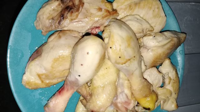 - Das Huhn in etwa 8 Teile zerlegen und enthäuten.