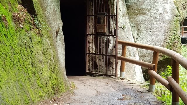 Wir genießen die Landschaft und erreichen nach ca. zwei Stunden die Hängebrücke. Direkt bei der Schaukelbrücke bewundern wir die Hans-Heiling-Felsen. Die Felsengrund ist ein sagenumworbenes Naturdenkmal. Der Sage nach soll es sich um einen versteinerten Hochzeitszug handeln.