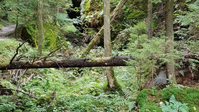 Ich ertappe mich bei dem Gedanken, wie schön die Fahrt ohne das Gerede des Bootsführers wäre. Einfach nur die Ruhe und die traumhafte Natur genießen. Aber gut, ich kann die Stimme ganz gut weg blenden und genieße. Nach dem Anlegen sehen wir zu, dass wir die Cocker Spaniel Truppe hinter uns lassen und wandern weiter durch die Klamm. Nach ca. 30 Minuten erreichen wir die nächste Anlegestelle. Jetzt geht es in die Wilde Klamm – auch hier nur per Boot. Diesmal ohne Hunde aber auch mit Nonstop Gerede des Bootsführers…. Schön ist es aber trotzdem. Bei zweiten Mal sind wir nur 10 Minuten unterwegs. Unser Weg führt uns weiter durch die Klamm. Nach 30 Minuten verabschieden wir uns von der Kamnitz und wandern noch ein gutes Stück durch den Wald bergauf Richtung Mezni Louka.