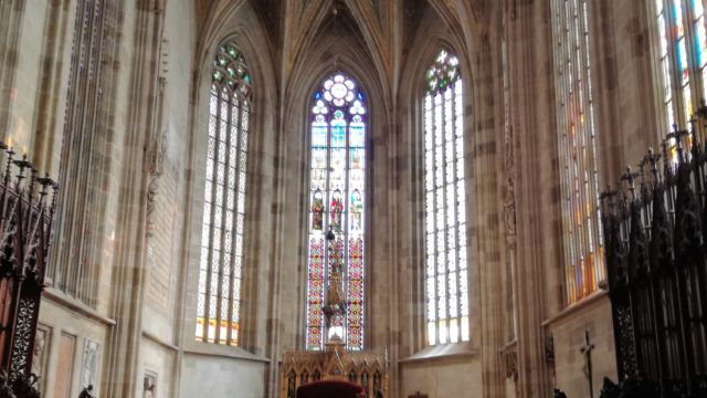 Kurz zur nächsten Tourist-Information gelaufen, um einen Plan der Innenstadt zu besorgen und gleich nebenan geht es dann auch schon los mit dem Primatialpalais, dem alten Rathaus, dem Maximilianbrunnen. Wir tranken erstmal einen Kaffee und teilten uns dazu einen herrlichen Schokokuchen im Schokodafe Maximilian, bis uns auch hier die vielen Japaner dermassen auf die Pelle rückten, daß wir den geordneten Rückzug antraten. Nach einem kurzen Abstecher zum Michaelertor und in den Martinsdom sind wir dann hoch auf die Burg gelaufen. Da hat man dann auch tatsächlich einen schönen Überblick über die Stadt, in den nett angelegten Burggarten und über die Donau. Schon ein wenig beeindruckend.